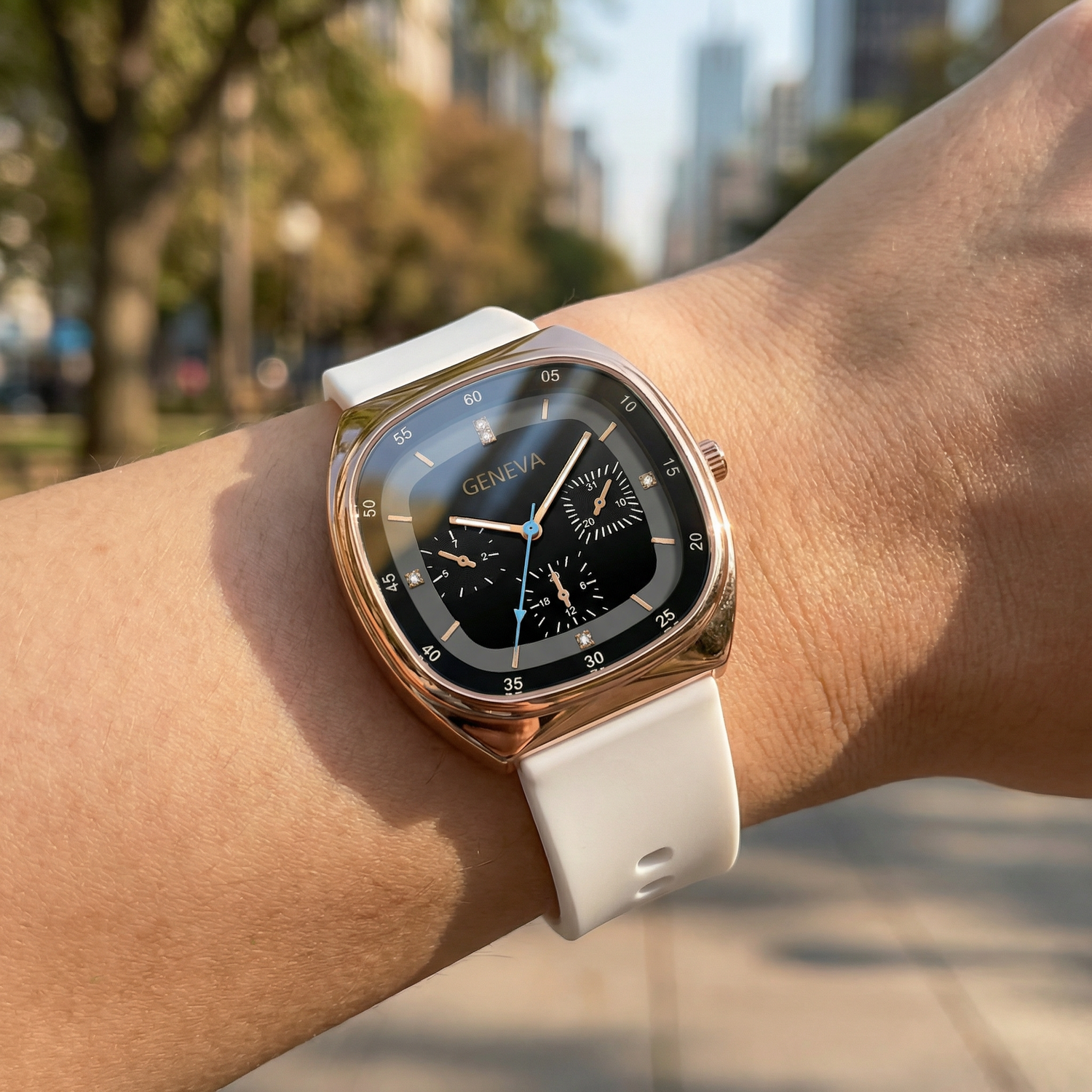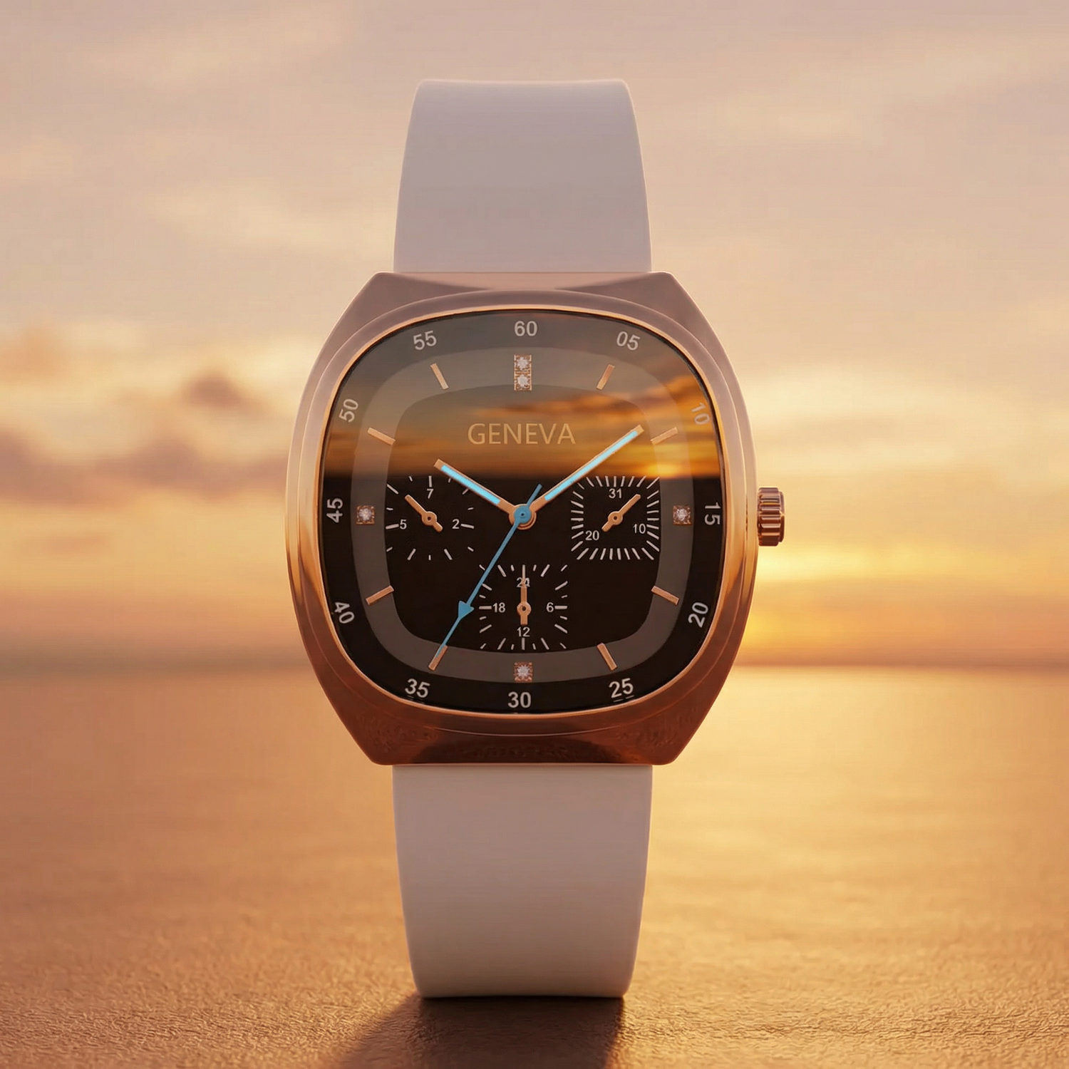 Kristallglaset skyddar urtavlan mot repor och det raffinerade silikonarmbandet är både bekvämt, slitstarkt och flexibelt.