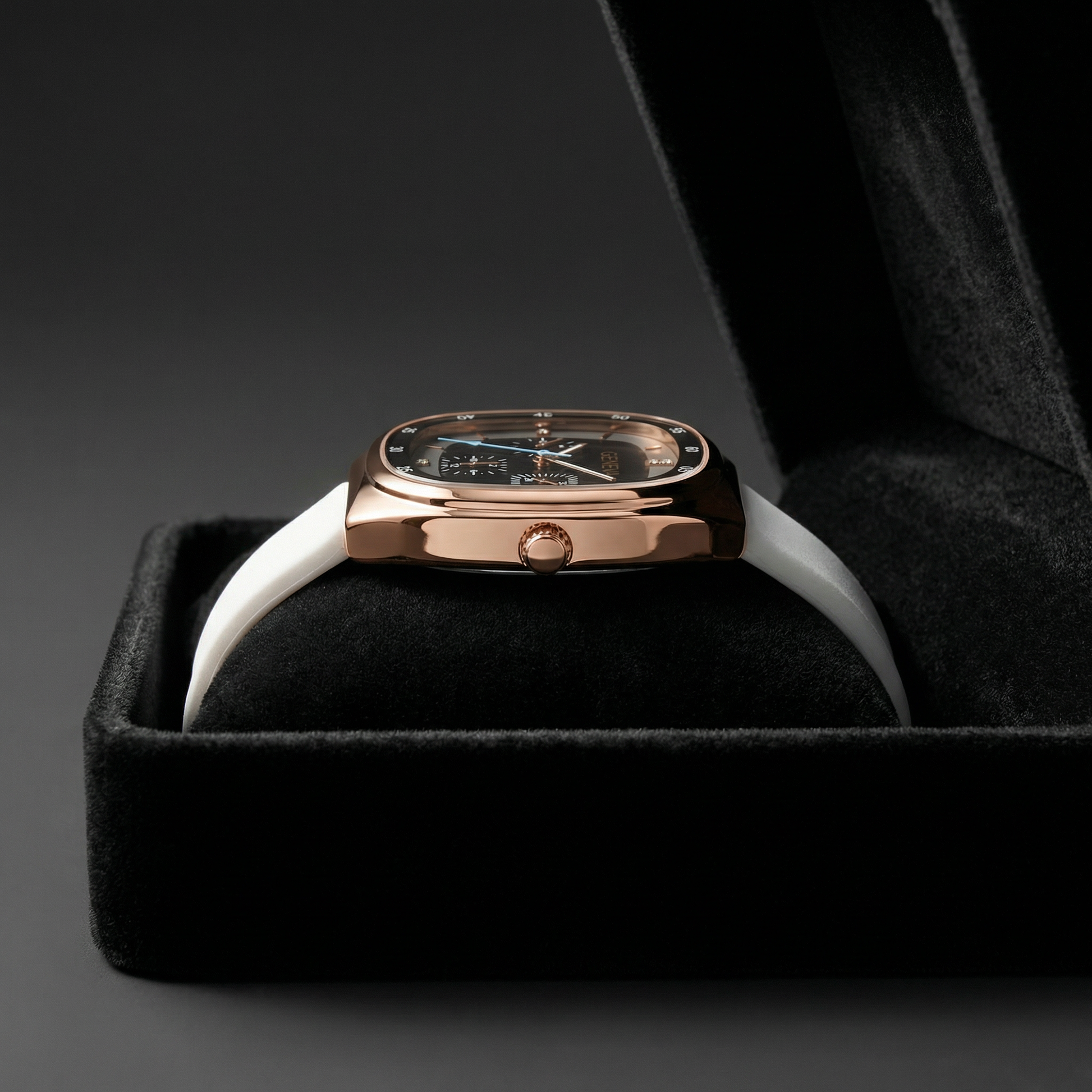 Vi kombinerar modern design med noggrant utvalda material som rostfritt stål (316L) och PVD‑beläggning. Resultatet är en sofistikerad finish som håller klockan vacker och funktionell i många år.